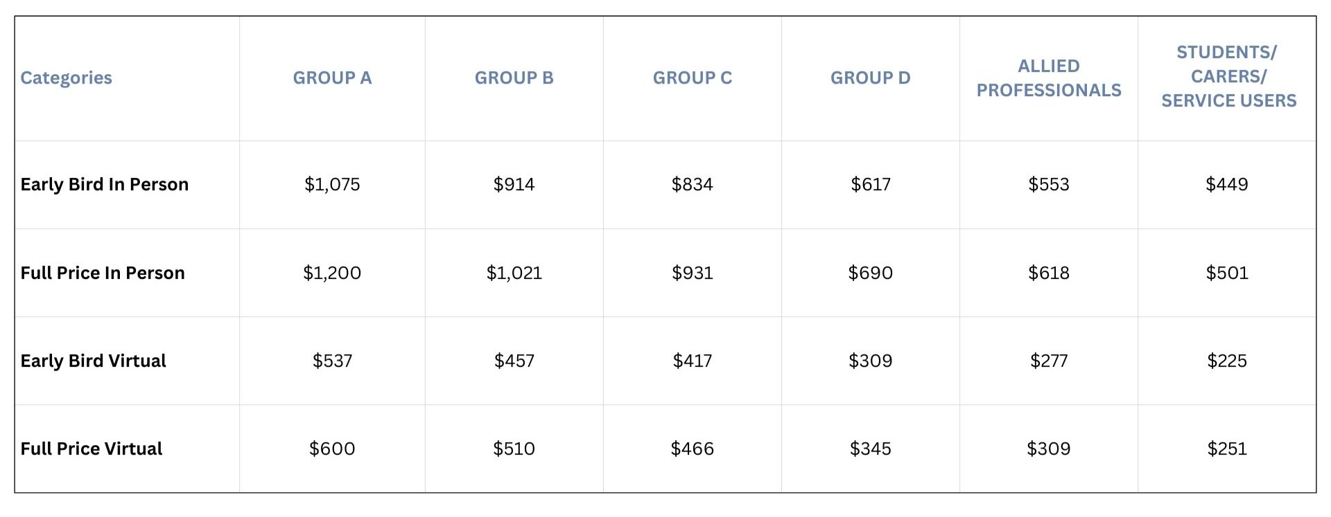 - All prices are listed in Australian Dollars and inclusive of Australian Goods & Services Tax