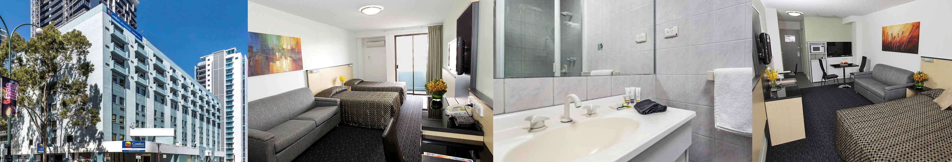 Novotel Comfort Inn & Suites Goodearth Perth Offers a comfortable, apartment-style stay with self-contained rooms. Located in East Perth, it provides easy access to the CBD, public transport, and local attractions. Guests can enjoy on-site dining, free Wi-Fi, and complimentary parking.